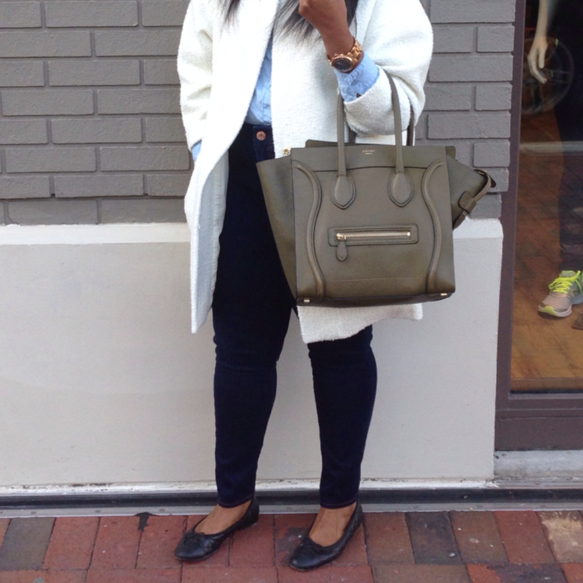 Details of my outfit: Coat: H&M (here), Jeans: American Eagle Shoes: Chanel (similar) Handbag: Céline (similar) Necklace: Zara (similar)