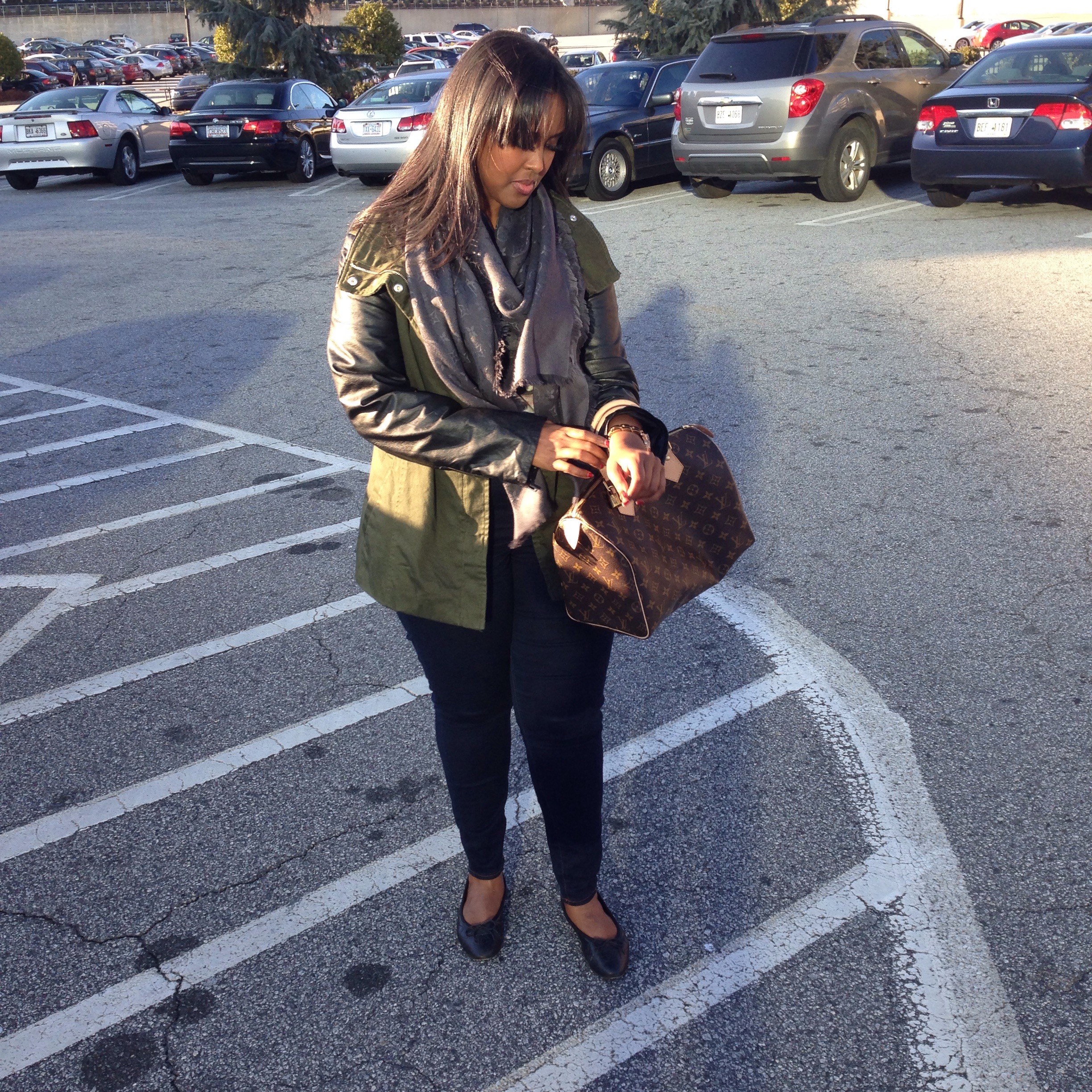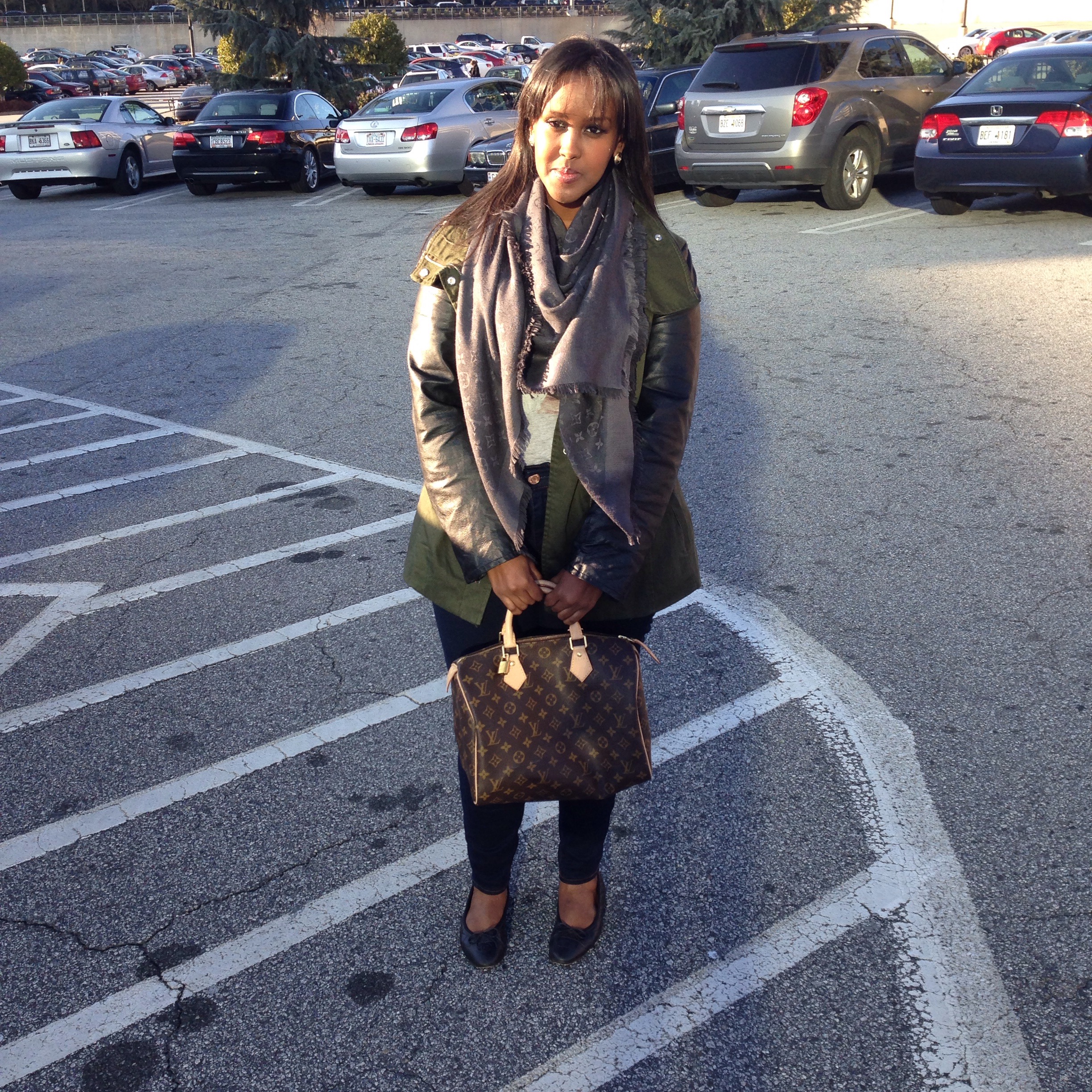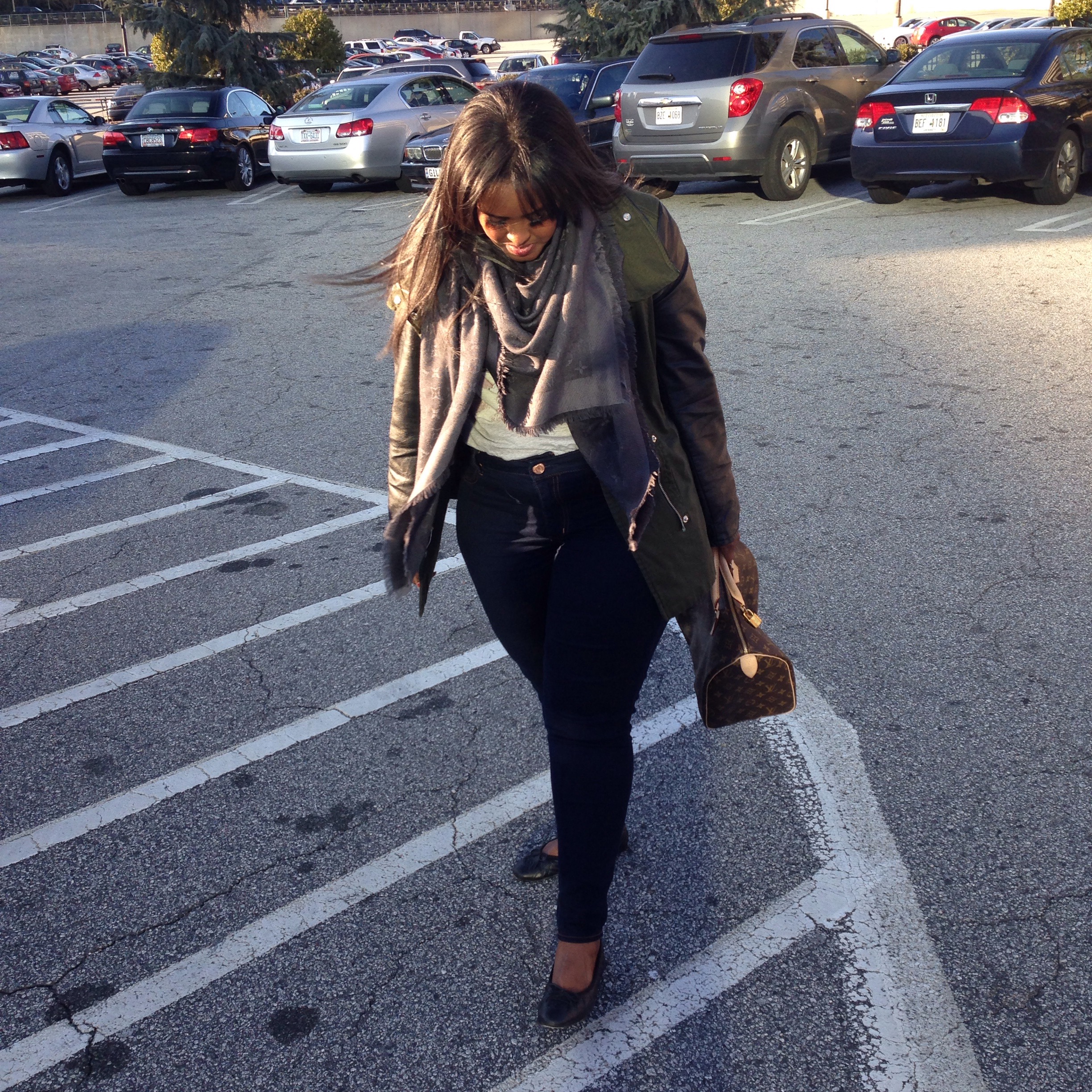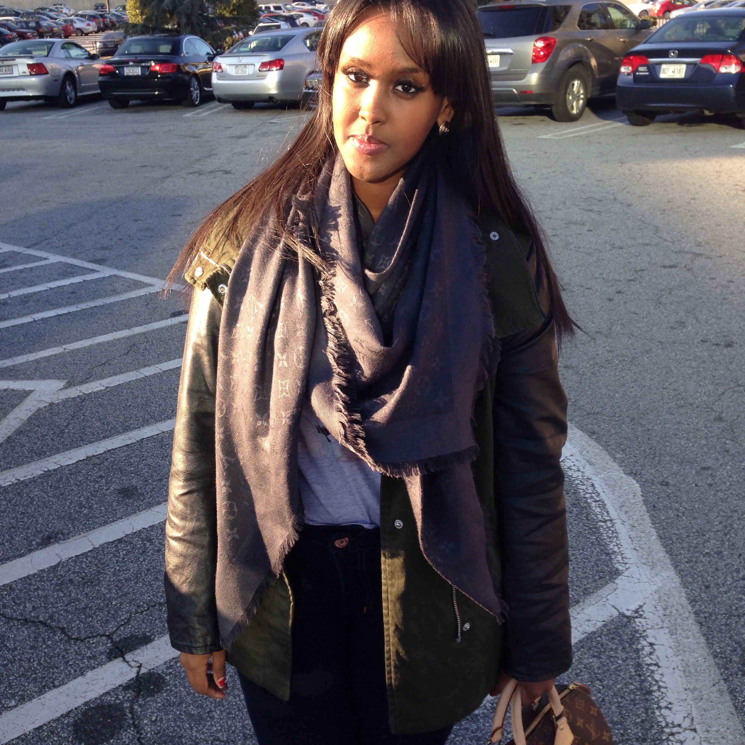 I finally got a chance to wear my Louis Vuitton shawl and kept up with my casual glam look by pairing it with denim jeans, printed T-shirt, and of course fab accessories. Hope you like the look -Habon xx