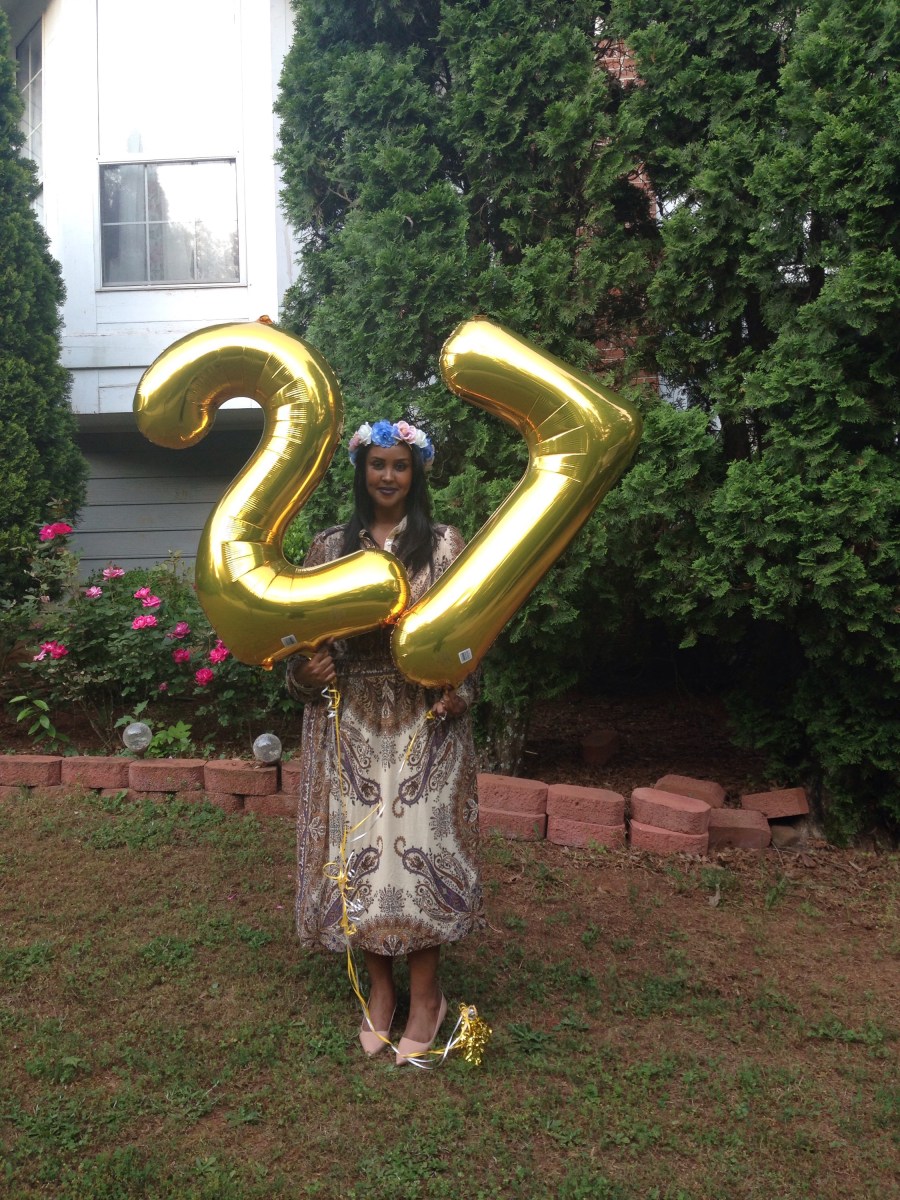 I decided to go for a boho chic look for my 27th birthday. I absolutely love this long dark floral dress from Mango. I purchased it several years ago, but find myself constantly going back to it. I paired the dress with my custom nude Prada shoes and a bright floral crown I picked up from Nordstrom to complete the look! Habon xo
