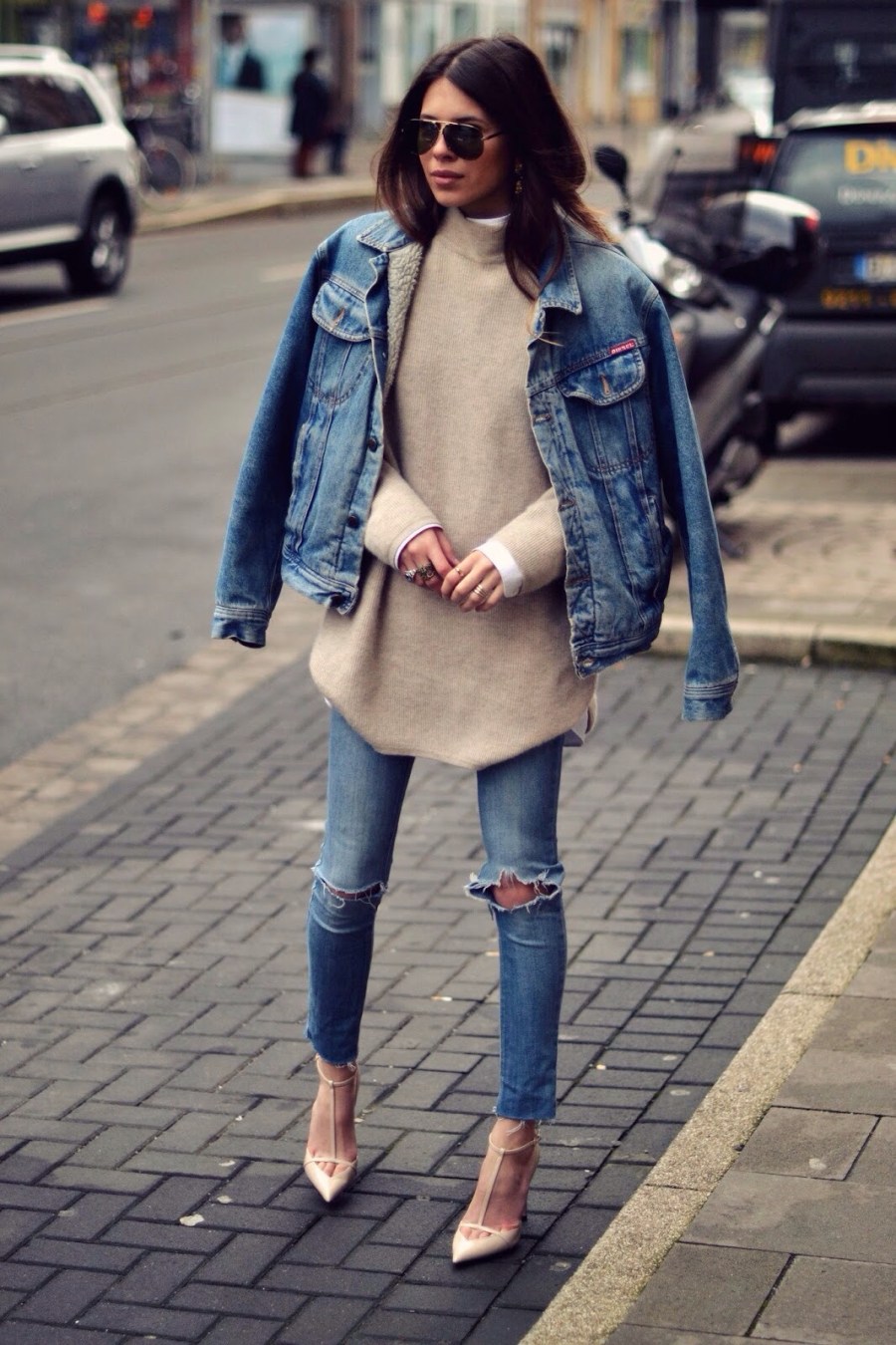 It’s no surprise that I love some distress jeans but I love layering even more. The denim on denim look with the perfect tan knit sweater is effortless fab. While the second stylist paired her distress jeans with a crisp white shirt and oversized coat and a little LV arm candy. Swoon! Let me know what your loving on Tumblr. -Habon xo