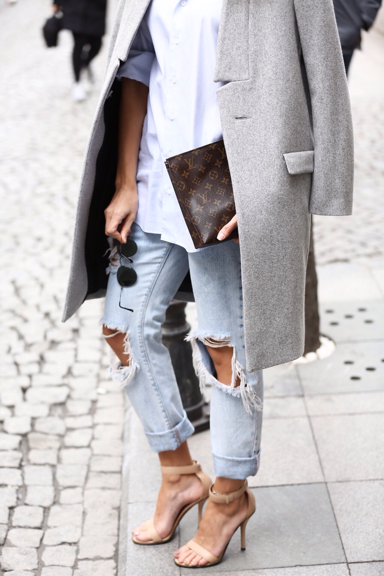 It’s no surprise that I love some distress jeans but I love layering even more. The denim on denim look with the perfect tan knit sweater is effortless fab. While the second stylist paired her distress jeans with a crisp white shirt and oversized coat and a little LV arm candy. Swoon! Let me know what your loving on Tumblr. -Habon xo